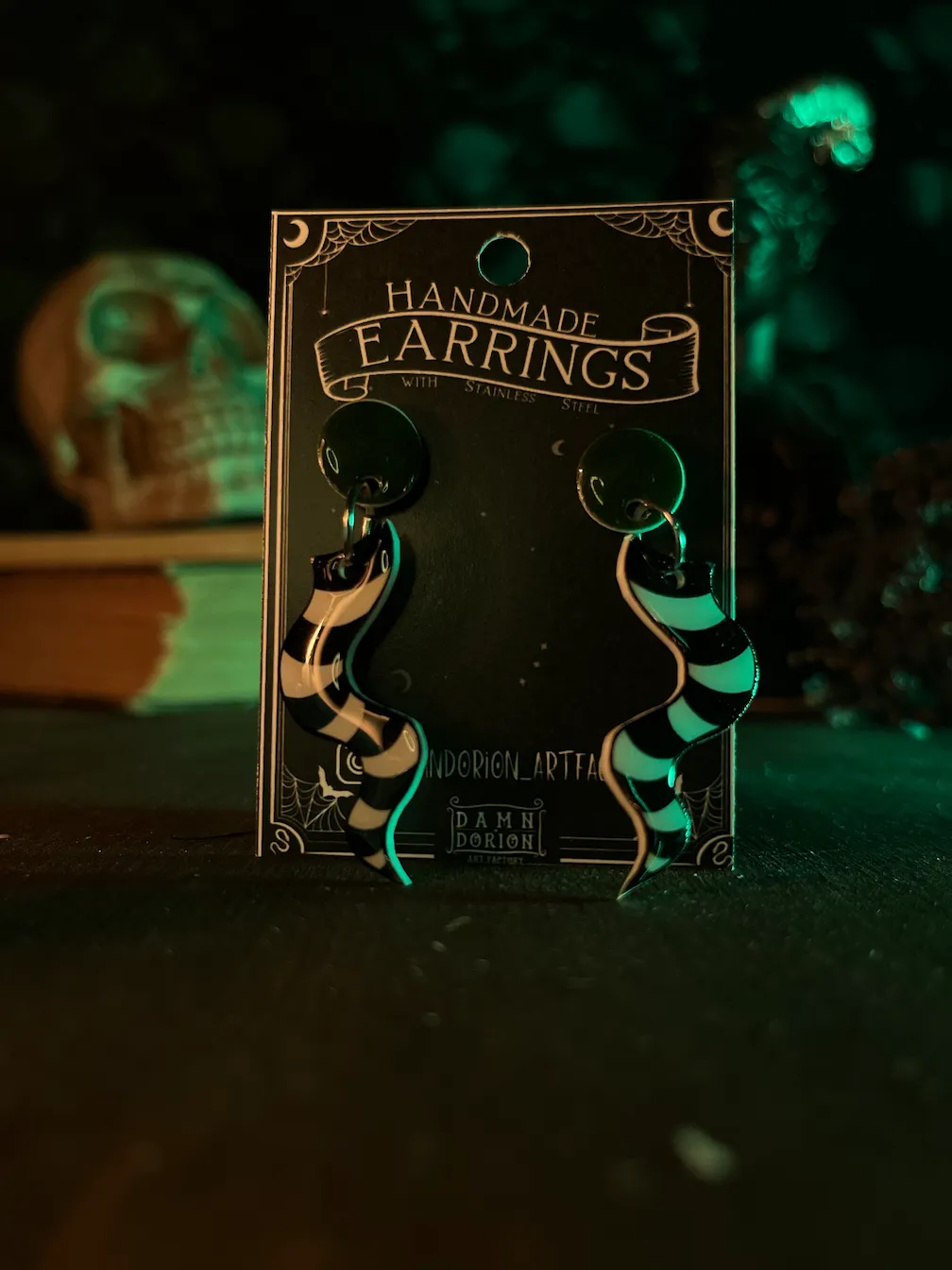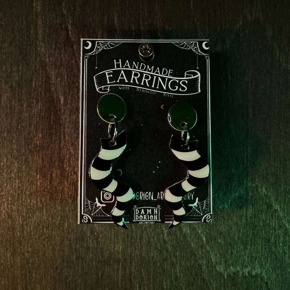 Ezek a kézzel készült BeetleJ fülik alig várják, hogy új gazdájuk fülében díszeleghessenek. A minta része a fülbevalónak egy speciális hőre zsugorodó fóliából készül, amire később gyanta réteg kerül, így biztosítva egy kis csillogást.