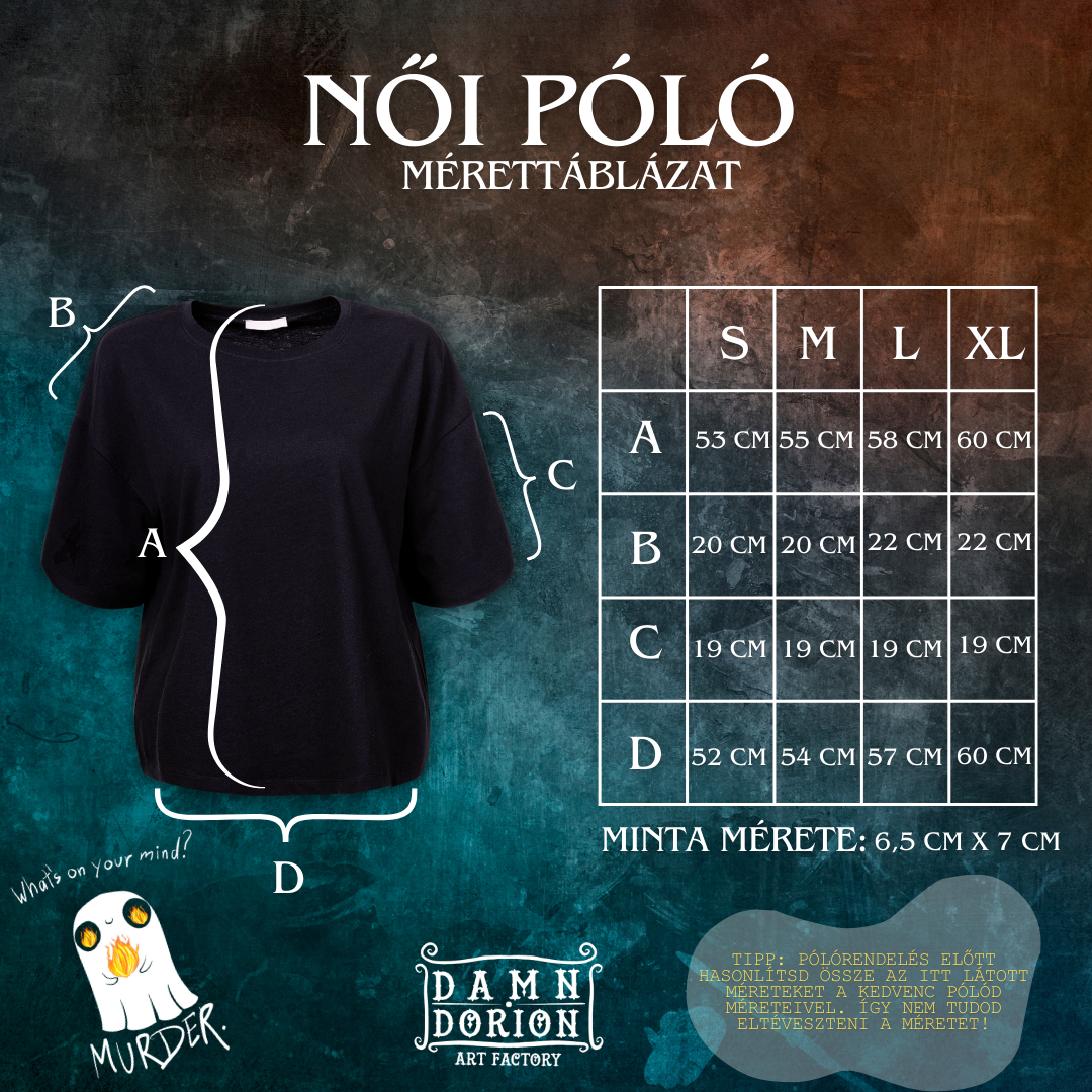 – A női szabású póló szélesebb és rövidebb az uniszexnél. Oversize croptopra hasonlít.