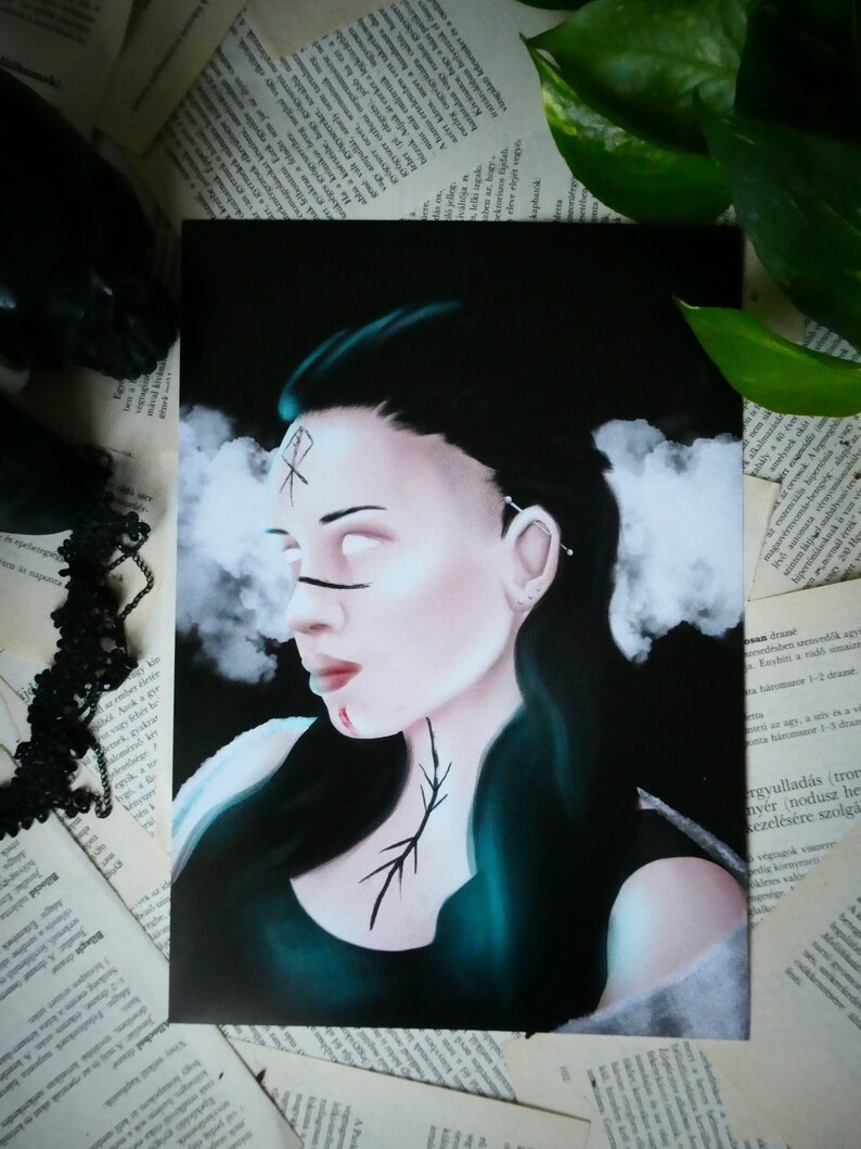 Dark fantasy stílusú alkotás kerettel vagy keret nélkül.